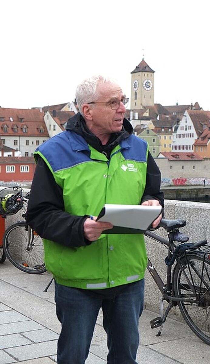 Mein Name ist Wolfgang Bogie, ich bin der Vorsitzende des Kreisverbandes Regensburg vom Verkehrsclub Deutschland. Der Verkehrsclub Deutschland, kurz VCD, ist der einzige ökologisch orientierte Verkehrsclub in Deutschland. Er hat deutschlandweit 55.000 Mitglieder und setzt sich seit 1986 für eine nachhaltige und sozial gerechte Verkehrswende, sachlich und kreativ, ein. Oftmals findet die Arbeit des VCD eher im Hintergrund statt. Z.B. die Einführung der Bahncard, die Diskussionen um den Deutschlandtakt aber auch die Vision Zero – Null Verkehrstote – Null Schwerverletzte im Bereich Verkehr sind auf Initiativen des VCD zurückzuführen.