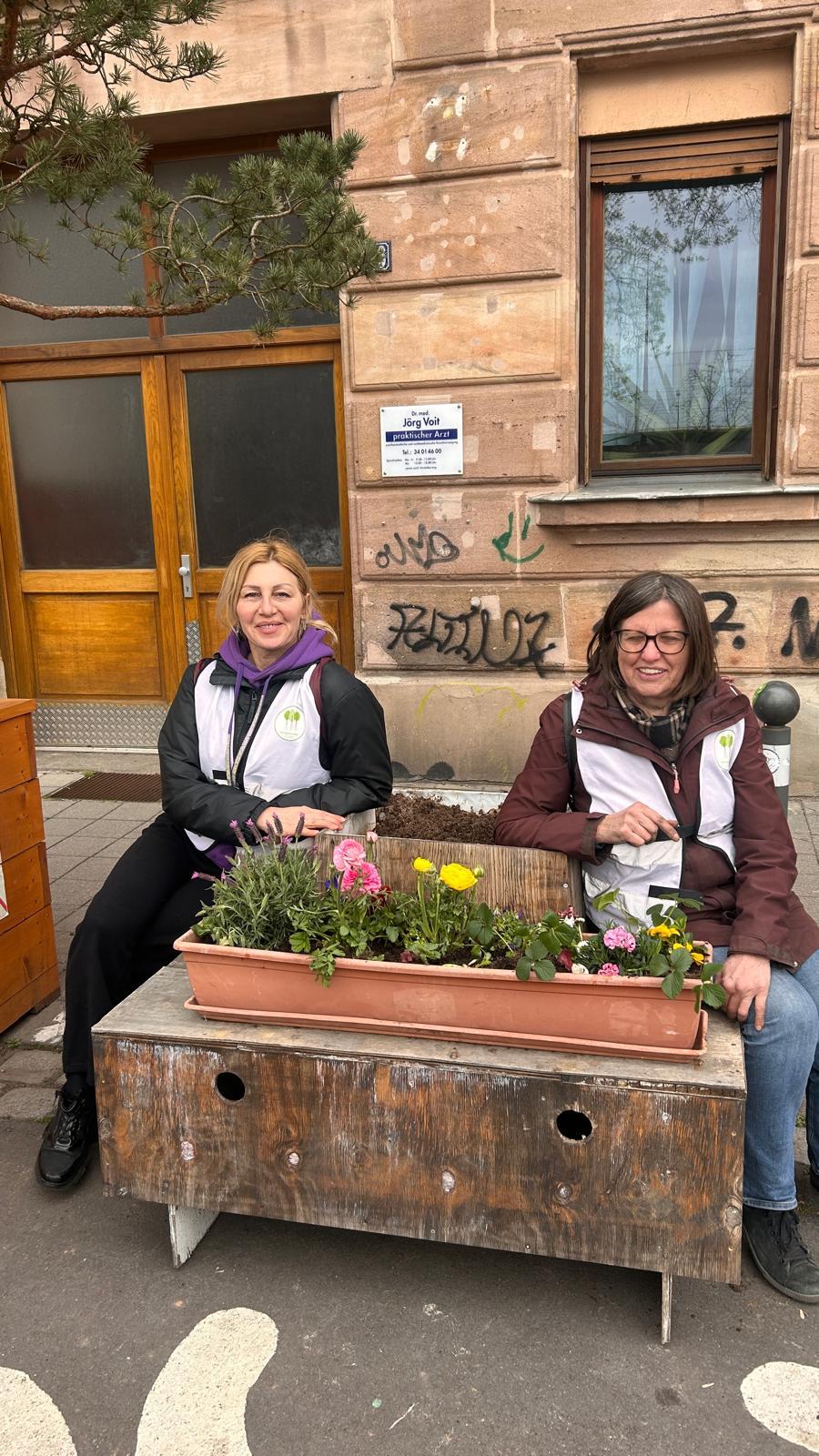Eugenia und Irmgard haben unsere Beete gestaltet und mit Blumen geschmückt.